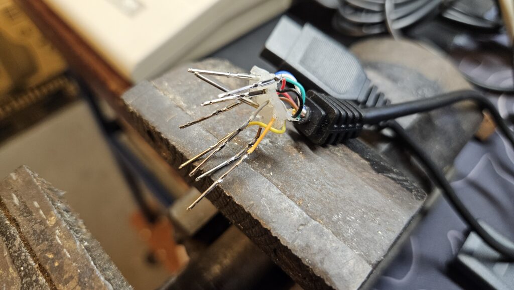 Dzięki tej stronie dowiedziałem się, że można kupić nowy joystick do Commodore64, należy jedynie wymienić kabel USB na DB9. Po zakupie okazało się, że nabyłem wersję V09P, która nie jest opisana na stronie i różni się od pozostałych pinoutem oraz kolorami kabli. Oto pinout mojego pada: